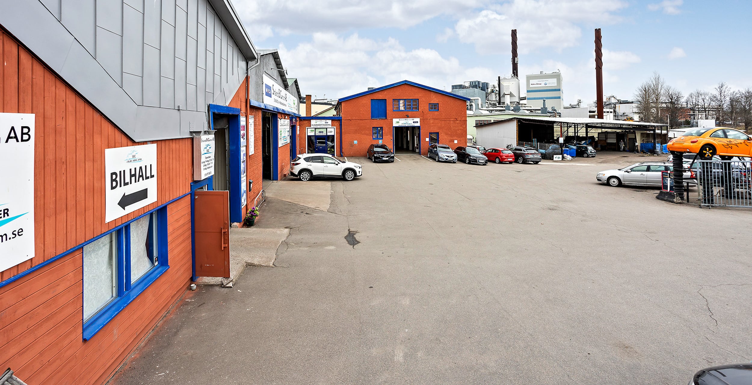 Byggnader: Bilhall: Butiksarea med stora skyltfönster, uppförd i lättbetong, typ siporex, tak gummiduk. Tvätthall: Isolerad, tak gummiduk. Bilhall och tvätthall med fjärrvärme, nytt ventilationsaggregat 2018. Lackverkstad, bilverkstad mm: Byggnad uppförd i tegel, ungefär halva taket gummiduk, halva tegeltak. Däckverkstad : Uppförd i tegel, plåttak Skärmtak: järnkonstruktion med plåttak.
