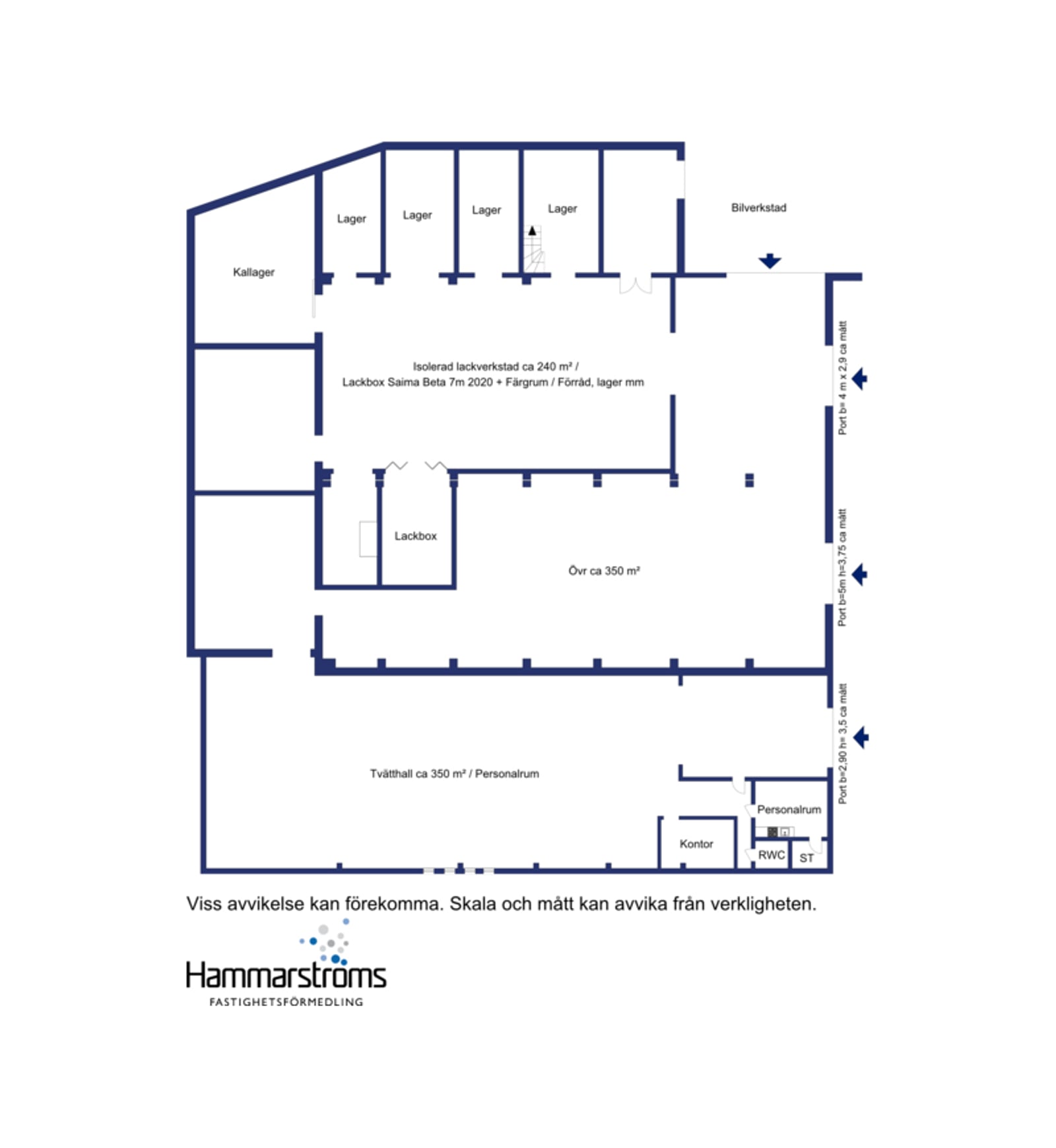 Bilverkstad ca 250 m2 + ca 50 m2 förråd, wc